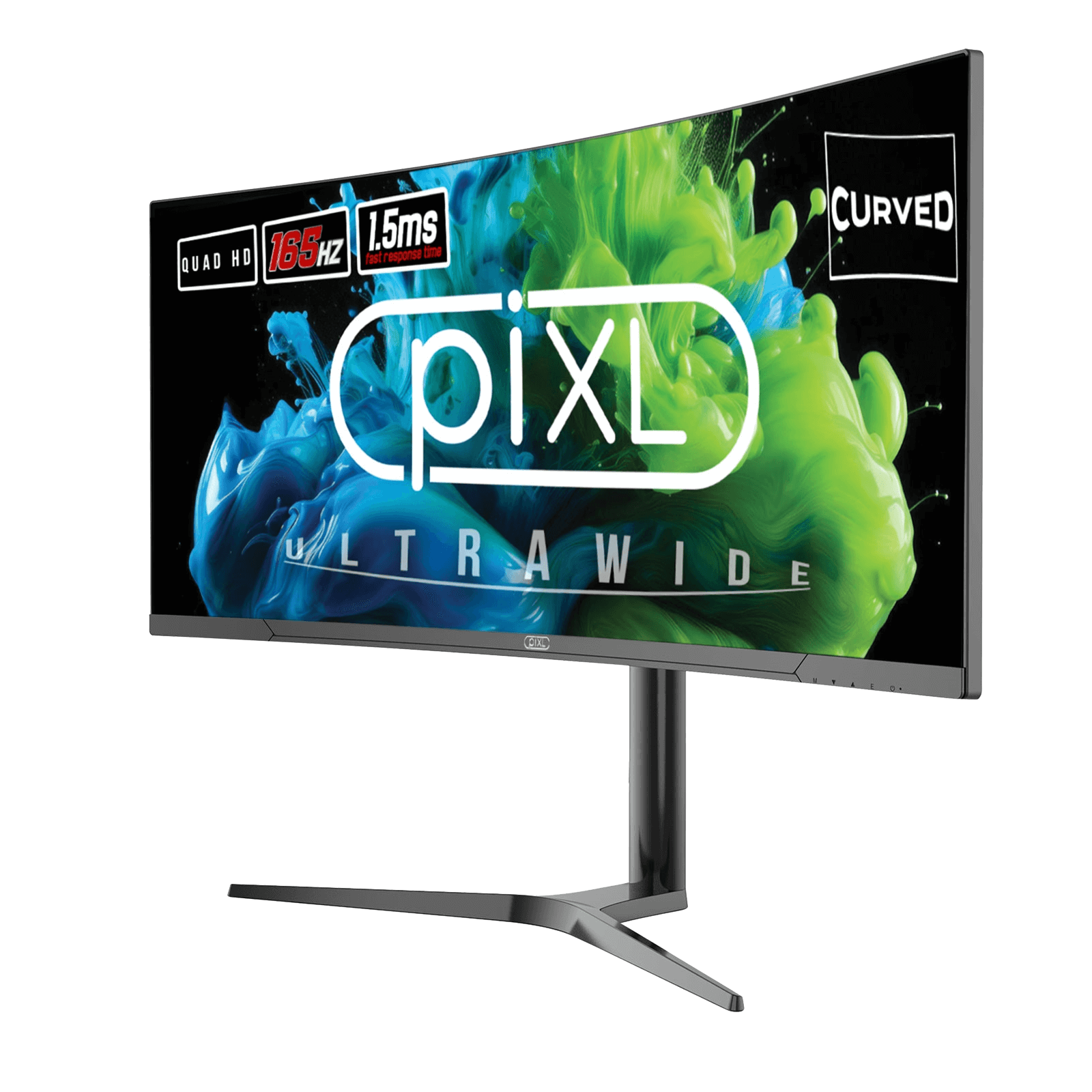 The piXL CM34C7 34 Inch Ultrawide QHD Curved Gaming Monitor monitor offers a premium visual experience with its 3440 x 1440 resolution, 165Hz refresh rate, and 1.5ms MPRT response time - ideal for immersive gaming and smooth multitasking.