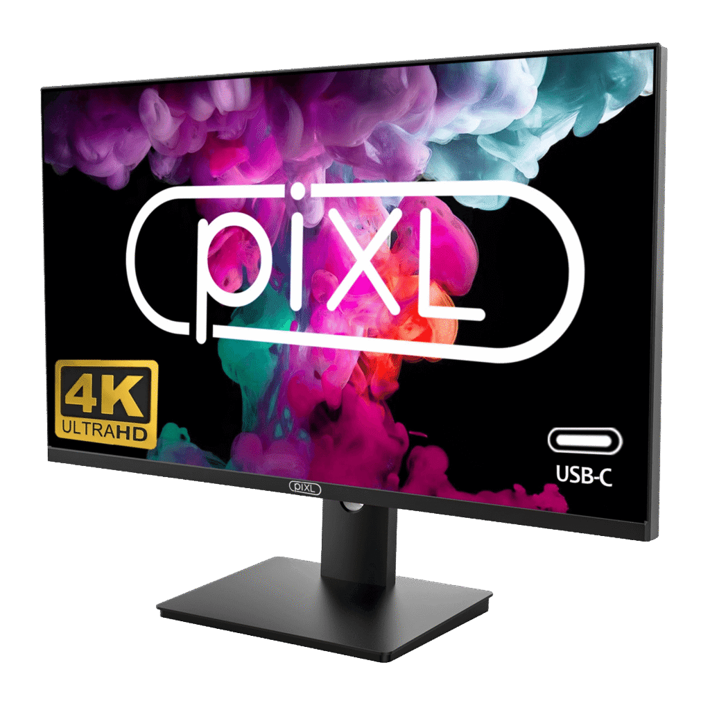 piXL PX27UDH4K 27 Inch Frameless IPS Monitor, 4K, LED Widescreen, 5ms Response Time, 60Hz Refresh, HDMI, Display Port, 2x USB-A+, USB-B+, USB-C 16.7 Million Colour Support, VESA Mount, Black Finish, 3 Year Warranty